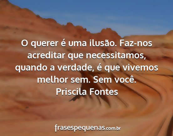 O querer é uma ilusão. Faz-nos acreditar que necessitamos, quando a verdade, é que vivemos melhor sem. Sem você.Priscila Fontes