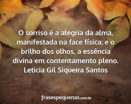 O sorriso é a alegria da alma, manifestada na face física; e o brilho dos olhos, a essência divina em contentamento pleno.Leticia Gil Siqueira Santos