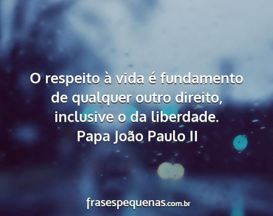 O respeito à vida é fundamento de qualquer outro direito, inclusive o da liberdade.Papa João Paulo II