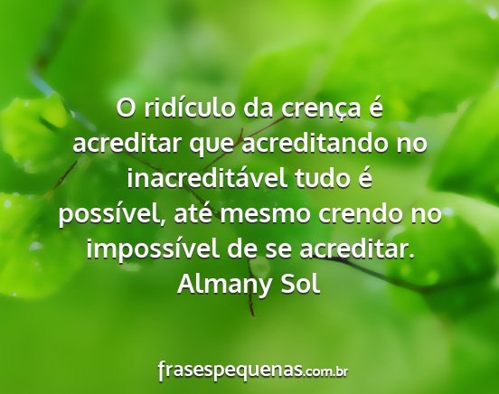O ridículo da crença é acreditar que acreditando no inacreditável tudo é possível, até mesmo crendo no impossível de se acreditar.Almany Sol