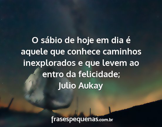 O sábio de hoje em dia é aquele que conhece caminhos inexplorados e que levem ao entro da felicidade;Julio Aukay