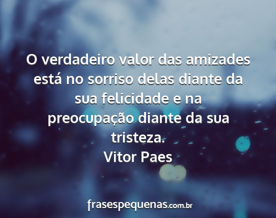 O verdadeiro valor das amizades está no sorriso delas diante da sua felicidade e na preocupação diante da sua tristeza.Vitor Paes