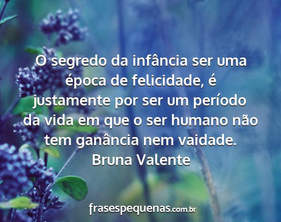 O segredo da infância ser uma época de felicidade, é justamente por ser um período da vida em que o ser humano não tem ganância nem vaidade.Bruna Valente