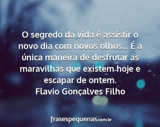 O segredo da vida é assistir o novo dia com novos olhos... É a única maneira de desfrutar as maravilhas que existem hoje e escapar de ontem.Flavio Gonçalves Filho