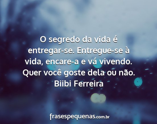 O segredo da vida é entregar-se. Entregue-se à vida, encare-a e vá vivendo. Quer você goste dela ou não.Biibi Ferreira