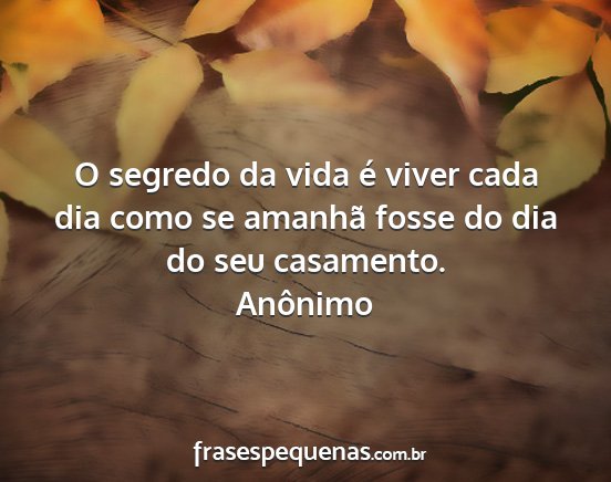 O segredo da vida é viver cada dia como se amanhã fosse do dia do seu casamento.