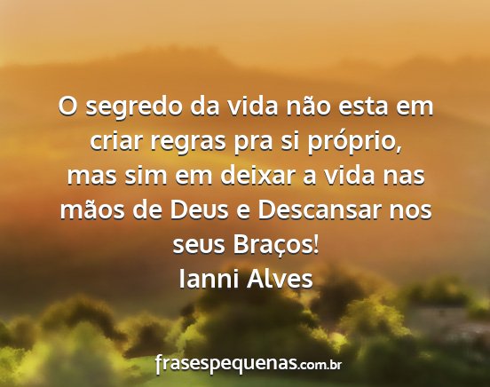 O segredo da vida não esta em criar regras pra si próprio, mas sim em deixar a vida nas mãos de Deus e Descansar nos seus Braços!Ianni Alves