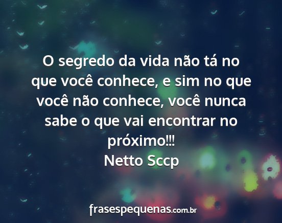 O segredo da vida não tá no que você conhece, e sim no que você não conhece, você nunca sabe o que vai encontrar no próximo!!!Netto Sccp