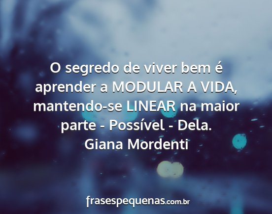 O segredo de viver bem é aprender a MODULAR A VIDA, mantendo-se LINEAR na maior parte - Possível - Dela.Giana Mordenti