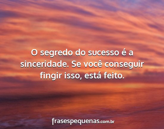 O segredo do sucesso é a sinceridade. Se você conseguir fingir isso, está feito.