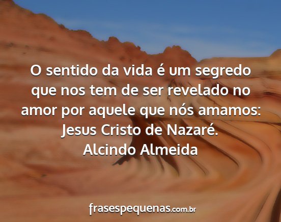 O sentido da vida é um segredo que nos tem de ser revelado no amor por aquele que nós amamos: Jesus Cristo de Nazaré.Alcindo Almeida