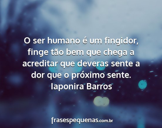 O ser humano é um fingidor, finge tão bem que chega a acreditar que deveras sente a dor que o próximo sente.Iaponira Barros