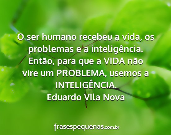 O ser humano recebeu a vida, os problemas e a inteligência. Então, para que a VIDA não vire um PROBLEMA, usemos a INTELIGÊNCIA.Eduardo Vila Nova