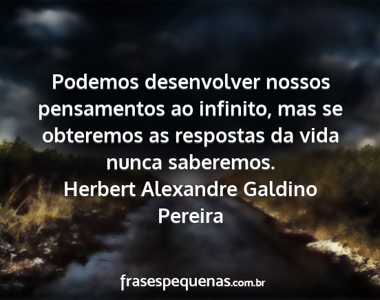 Podemos desenvolver nossos pensamentos ao infinito, mas se obteremos as respostas da vida nunca saberemos.Herbert Alexandre Galdino Pereira