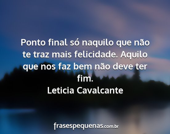 Ponto final só naquilo que não te traz mais felicidade. Aquilo que nos faz bem não deve ter fim.Leticia Cavalcante