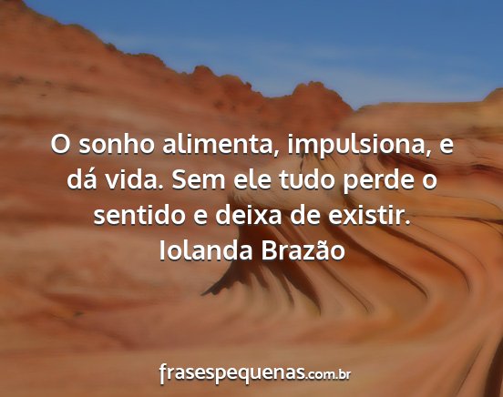 O sonho alimenta, impulsiona, e dá vida. Sem ele tudo perde o sentido e deixa de existir.Iolanda Brazão
