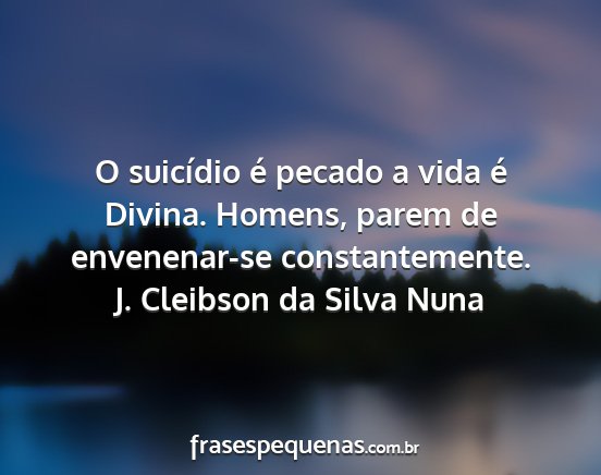 O suicídio é pecado a vida é Divina. Homens, parem de envenenar-se constantemente.J. Cleibson da Silva Nuna