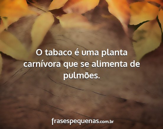 O tabaco é uma planta carnívora que se alimenta de pulmões.