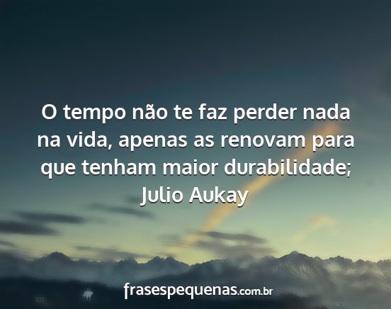 O tempo não te faz perder nada na vida, apenas as renovam para que tenham maior durabilidade;Julio Aukay
