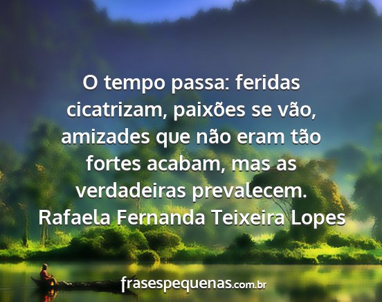 O tempo passa: feridas cicatrizam, paixões se vão, amizades que não eram tão fortes acabam, mas as verdadeiras prevalecem.Rafaela Fernanda Teixeira Lopes