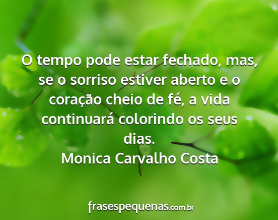 O tempo pode estar fechado, mas, se o sorriso estiver aberto e o coração cheio de fé, a vida continuará colorindo os seus dias.Monica Carvalho Costa