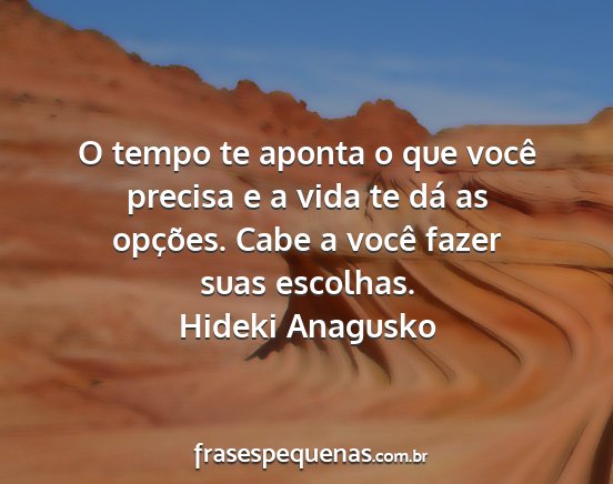 O tempo te aponta o que você precisa e a vida te dá as opções. Cabe a você fazer suas escolhas.Hideki Anagusko