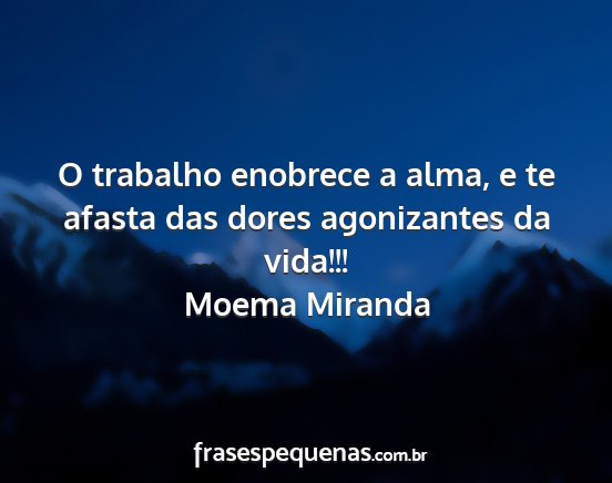 O trabalho enobrece a alma, e te afasta das dores agonizantes da vida!!!