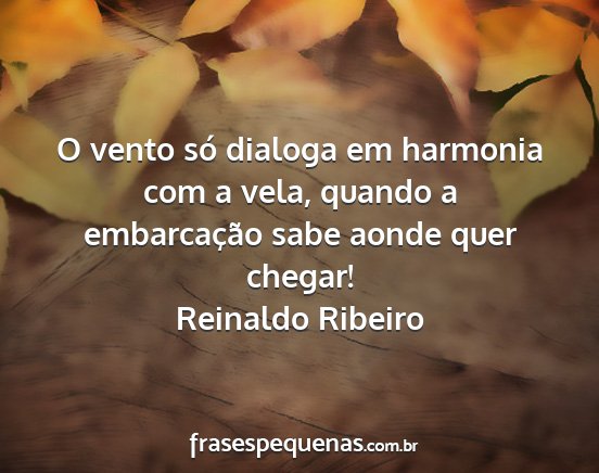 O vento só dialoga em harmonia com a vela, quando a embarcação sabe aonde quer chegar!Reinaldo Ribeiro