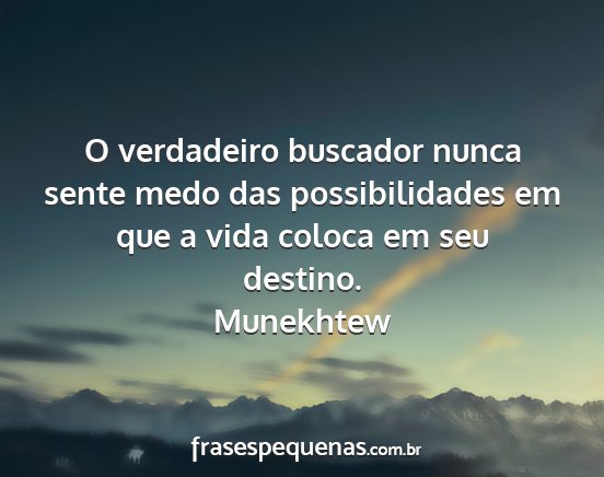 O verdadeiro buscador nunca sente medo das possibilidades em que a vida coloca em seu destino.Munekhtew