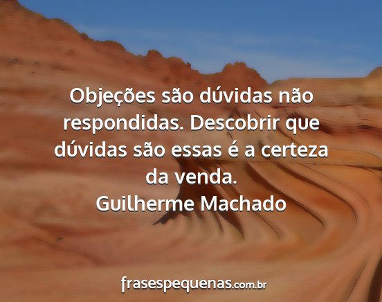 Objeções são dúvidas não respondidas. Descobrir que dúvidas são essas é a certeza da venda.Guilherme Machado
