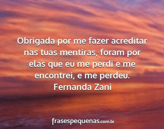 Obrigada por me fazer acreditar nas tuas mentiras, foram por elas que eu me perdi e me encontrei, e me perdeu.Fernanda Zani