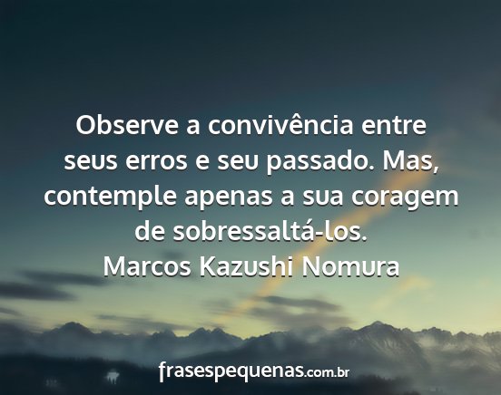 Observe a convivência entre seus erros e seu passado. Mas, contemple apenas a sua coragem de sobressaltá-los.Marcos Kazushi Nomura