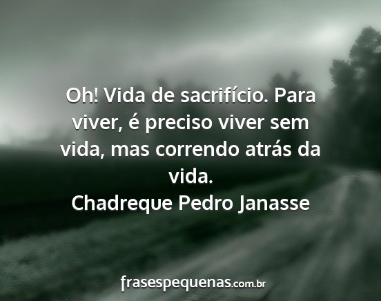 Oh! Vida de sacrifício. Para viver, é preciso viver sem vida, mas correndo atrás da vida.Chadreque Pedro Janasse