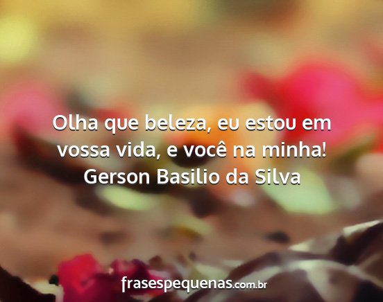 Olha que beleza, eu estou em vossa vida, e você na minha!