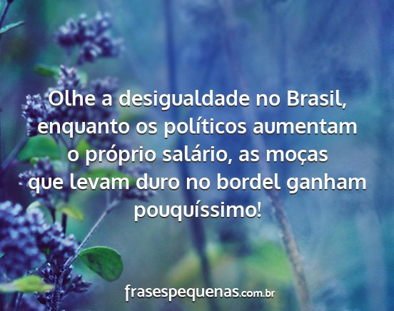 Olhe a desigualdade no Brasil, enquanto os políticos aumentam o próprio salário, as moças que levam duro no bordel ganham pouquíssimo!