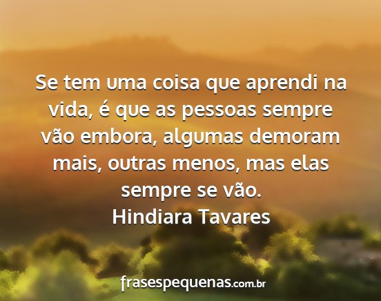 Se tem uma coisa que aprendi na vida, é que as pessoas sempre vão embora, algumas demoram mais, outras menos, mas elas sempre se vão.Hindiara Tavares