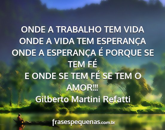 E ONDE SE TEM FÉ SE TEM O AMOR!!!Gilberto Martini Refatti