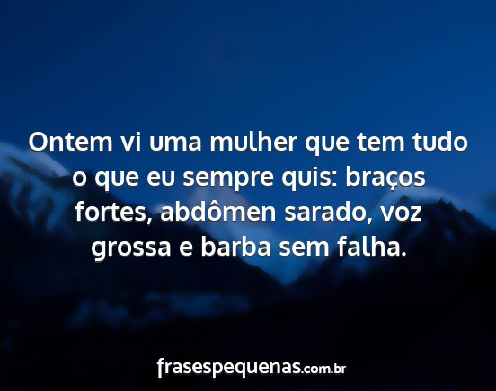 Ontem vi uma mulher que tem tudo o que eu sempre quis: braços fortes, abdômen sarado, voz grossa e barba sem falha.