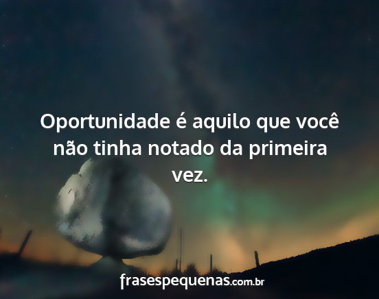 Oportunidade é aquilo que você não tinha notado da primeira vez.