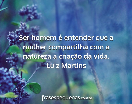 Ser homem é entender que a mulher compartilha com a natureza a criação da vida.