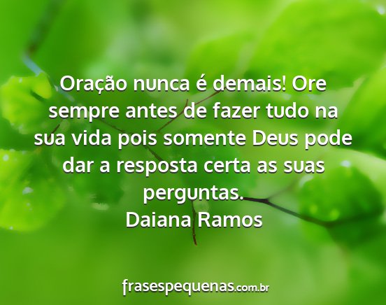 Oração nunca é demais! Ore sempre antes de fazer tudo na sua vida pois somente Deus pode dar a resposta certa as suas perguntas.Daiana Ramos
