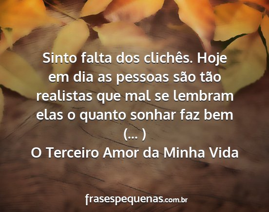Sinto falta dos clichês. Hoje em dia as pessoas são tão realistas que mal se lembram elas o quanto sonhar faz bem (... )O Terceiro Amor da Minha Vida