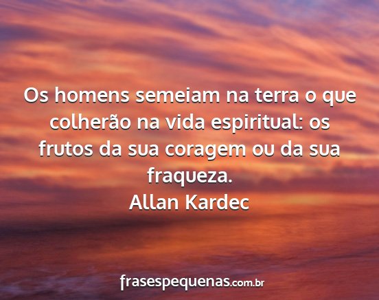 Os homens semeiam na terra o que colherão na vida espiritual: os frutos da sua coragem ou da sua fraqueza.Allan Kardec