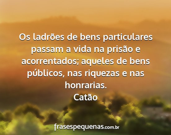 Os ladrões de bens particulares passam a vida na prisão e acorrentados; aqueles de bens públicos, nas riquezas e nas honrarias.Catão