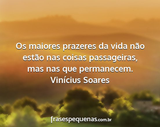 Os maiores prazeres da vida não estão nas coisas passageiras, mas nas que permanecem.