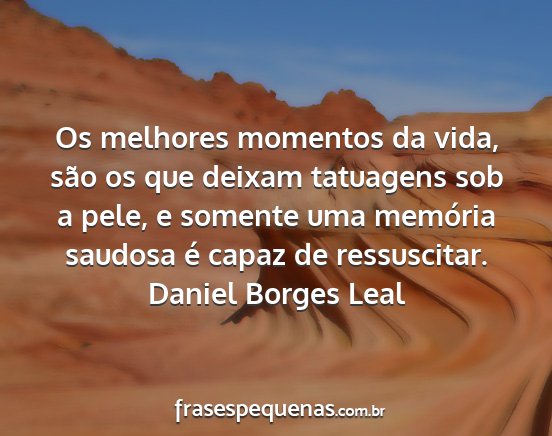 Os melhores momentos da vida, são os que deixam tatuagens sob a pele, e somente uma memória saudosa é capaz de ressuscitar.Daniel Borges Leal