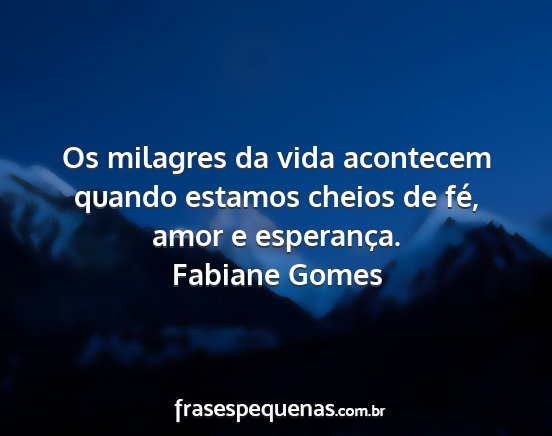 Os milagres da vida acontecem quando estamos cheios de fé, amor e esperança.