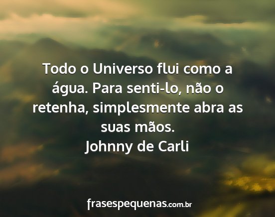 Todo o Universo flui como a água. Para senti-lo, não o retenha, simplesmente abra as suas mãos.Johnny de Carli