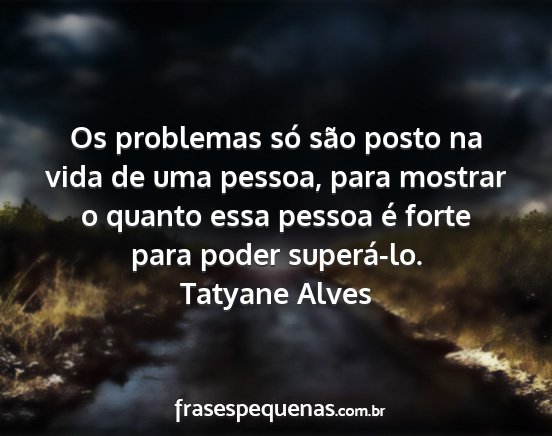 Os problemas só são posto na vida de uma pessoa, para mostrar o quanto essa pessoa é forte para poder superá-lo.Tatyane Alves