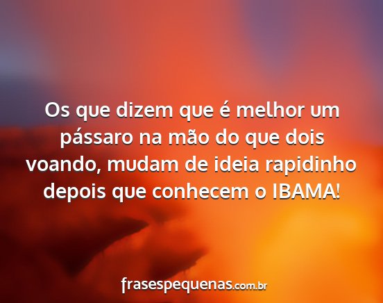 Os que dizem que é melhor um pássaro na mão do que dois voando, mudam de ideia rapidinho depois que conhecem o IBAMA!
